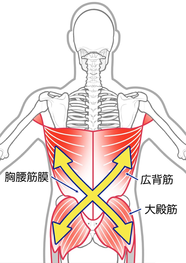 慢性的な腰痛がある人は広背筋と大臀筋をつなぐ『胸腰筋膜』が厚くなっているという研究があります。